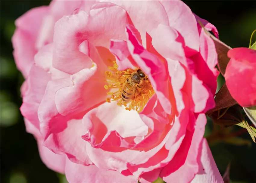 Damit die neuen Bewohner auf dem Balkon auch wirklich bienenfreundlich sind, sollte man wissen, woran man bienenfreundliche Balkonpflanzen erkennt. Denn dann kann man mit Kübel, Kasten und Co. für einen reich gedeckten Tisch sorgen und einen großen Teil zur Artenvielfalt beitragen. Was wären wir schließlich ohne die fleißigen Bienen, Hummeln, Wespen und andere Insekten, die bei der Bestäubung eine wichtige Rolle spielen und so vor allem in der Landwirtschaft nicht wegzudenken sind? Wir können unseren Teil beitragen und bienenfreundliche Balkonpflanzen auswählen. Die erkennt man in erster Linie daran, dass ihre Blüten ungefüllt sind und die Bienen und anderen Insekten ungehindert naschen können. Gefüllte Blüten hingegen versperren mit ihren Blütenblättern den Weg zu den Pollen und zum Nektar und sind daher für einen bienenfreundlichen Balkon eher ungeeignet. Am besten sieht man den Unterschied bei Rosen. Während Wildrosen einen gelben Punkt in der Mitte der Blüte haben und man dort deutlich die Pollen erkennt, sind gefüllte Edelrosen oft so dicht verschlossen, dass man nicht mal mit der eigenen Nase weit genug in die Blüte kommt, um daran zu riechen. Je freier der Zugang zur wichtigen Nahrung, desto bienenfreundlicher ist die Balkonpflanze!