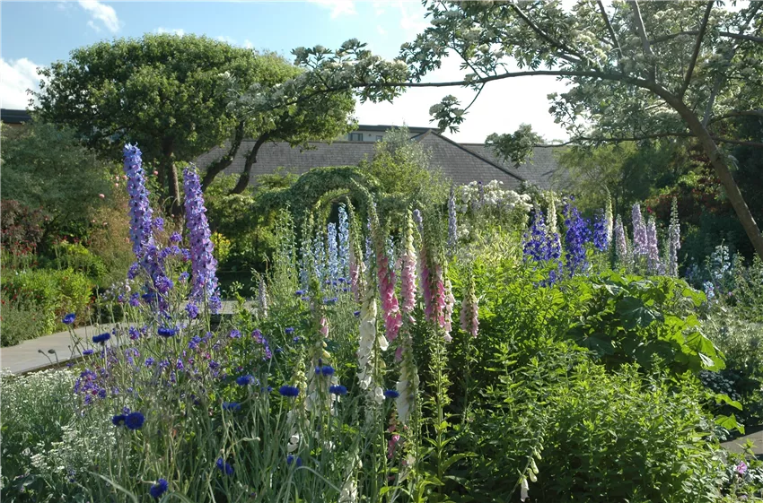 Staudenbeet mit Rittersporn und Fingerhut