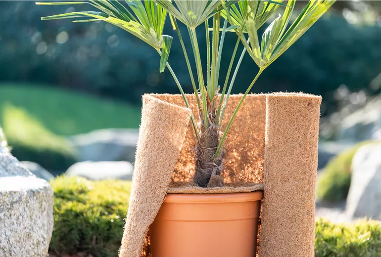 Schutz ist im Winter besonders wichtig, daher sollte man beim Garten winterfest machen vor allem darauf wert legen. Denn es gibt Pflanzen, die brauchen ein bisschen Unterstützung, um gut durch die kalte Jahreszeit zu kommen und damit ihnen Schnee und Eis nichts ausmacht. Dazu gehört ein guter Winterschutz, der vor allem bei empfindlichen Kübelpflanzen wichtig ist. Hat man kein frostfreies Winterquartier oder sind die Kübel zu groß zum Einlagern, kann man mit ein paar Mitteln für einen guten Schutz sorgen. So eignet sich eine Kokosmatte auf der Erde gut als Schutz vor Frost und Eis, gießen kann man durch die Matte trotzdem noch. Auch ein Stück Jute um den Topf kann für zusätzliche Wärme an den Wurzeln sorgen und wer kann, sollte die Pflanzkübel auf eine Styroporplatte stellen, damit die Kälte vom Boden nicht zu sehr nach oben zieht. An den Blättern kann ein dünner Stoff locker herumgewickelt für Schutz sorgen. Wichtig ist aber, dass an wärmeren Wintertagen gelüftet wird, damit die Pflanzen nicht anfangen zu schwitzen und das Schwitzwasser später gefriert und Frostschäden anrichtet. Im Frühjahr, wenn keine starken Minusgrade mehr zu erwarten sind, kann der Winterschutz dann wieder entfernt werden.