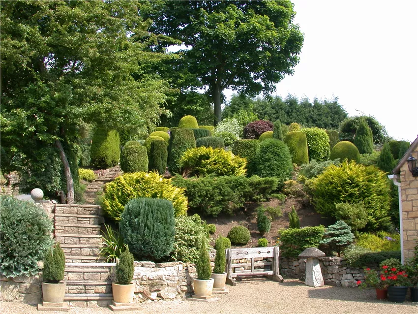 Terrassengarten mit Koniferen