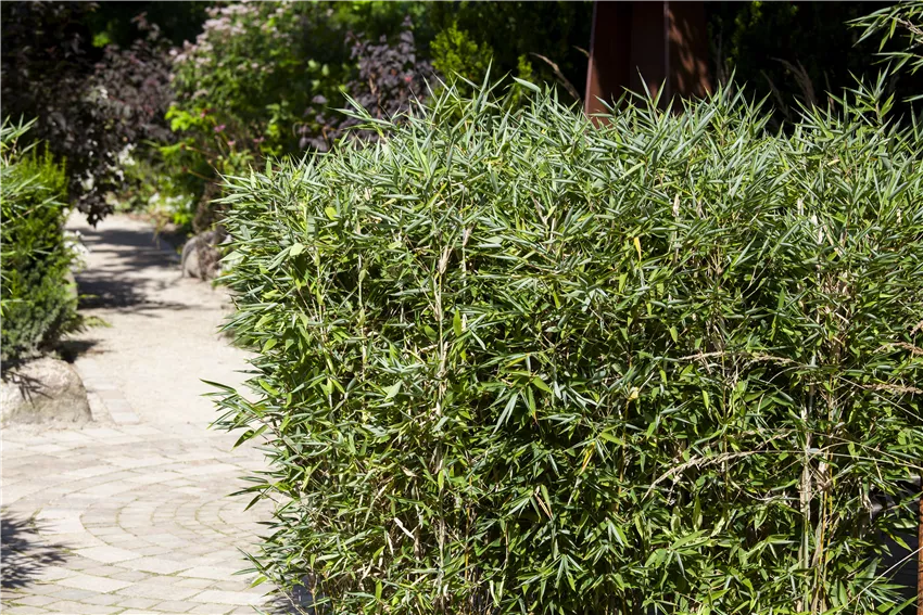 Wer sich den Schirmbambus in den eigenen Garten holen möchte, der muss kein perfektes Konzept eines asiatischen oder japanischen Gartens vorlegen. Denn das Ziergras macht auch in anderen Gestaltungskonzepten eine sehr gute Figur. Ob als blickdichte und immergrüne Hecke oder als stolze Solitärpflanze – es gibt viele gute Gründe, warum man sich den Schirmbambus in den Garten holen sollte. Und auch wer keinen Garten zur Verfügung hat, muss nicht auf das immergrüne Ziergras verzichten. Denn es eignet sich auch hervorragend für die Kultur im Kübel und damit kann man sogar auf dem Balkon für einen grünen und erfrischenden Sichtschutz gegen neugierige Nachbarsblicke sorgen. Wer bei der Pflanzung und Pflege ein paar Dinge beachtet, der wird lange Freude am Ziergras haben, das nicht nur im Sommer, sondern auch im Winter ein hübscher Anblick ist. Mit mehr als 15 verschiedenen Sorten sind die Gestaltungsmöglichkeiten vielfältig und so findet der Schirmbambus Platz in japanischen Gärten, Steingärten, als Heckenpflanze oder auch als Sicht- und Windschutz im Garten, auf der Terrasse oder auf dem Balkon.
