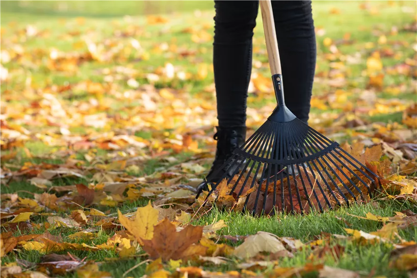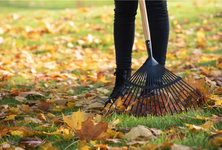 Bei der Gartenarbeit im Oktober ist es wichtig, den Garten von abgestorbenen Pflanzenresten und Laub zu befreien. Das organische Material kann sonst zu Pilzkrankheiten oder Schädlingen führen. Dabei entfernt man Laub von den Rasenflächen, Beeten und Wegen. Das gesammelte Laub kann man wunderbar als Mulchmaterial für die Beete verwenden oder kompostieren, um nährstoffreiche Erde für das nächste Frühjahr zu erhalten. Strauchschnitt und gesunde Pflanzenteile können ebenfalls auf dem Kompost landen. Mit all dem Laub und den abgestorbenen Pflanzenresten, die im Garten anfallen, hat man eine gute Basis für hochwertigen Kompost. Das organische Material dafür einfach abwechselnd mit grünen und braunen Materialien wie Küchenabfällen, Rasenschnitt und kleinen Ästen schichten, den Kompost regelmäßig mit einer Gabel wenden, um eine gute Durchlüftung zu gewährleisten und die frische Komposterde im nächsten Frühjahr verwenden. Und apropos Laub vom Rasen entfernen: Wenn das erledigt ist, wird es Zeit für die letzte Rasenpflege im Jahr. Bei der Gartenarbeit im Oktober ist es sinnvoll, den Rasen ein letztes Mal zu mähen und zu düngen, um ihn auf den Winter vorzubereiten. Dabei schneidet man den Rasen auf eine moderate Länge, um das Wachstum von Moos zu verhindern. Außerdem verwendet man einen herbstlichen Rasendünger, der reich an Kalium und Phosphor ist, um die Wurzelbildung zu fördern und den Rasen widerstandsfähig gegen Frost zu machen.
