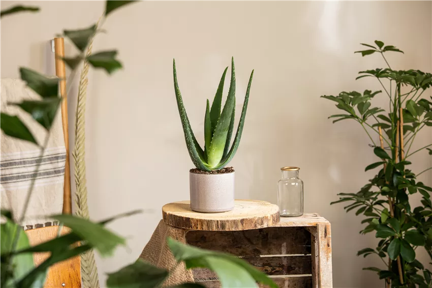 Bei der Raumgestaltung mit Kakteen und Sukkulenten kommt es nicht nur auf die inneren Werte an, denn auch das Aussehen kann oft entscheidend für den Pflanzenkauf sein. Wie gut, dass Kakteen und Sukkulenten so viele verschiedene Wuchsformen und Blattmuster zu bieten haben. Groß, klein, stachelig, behaart oder bunt gescheckt –da ist wirklich für jeden Pflanzenliebhaber etwas dabei. Wie wäre es mit den bunten Blättern der Aloe aristata? Ihr besonderes Muster bringt ein kleines bisschen Wüstenfeeling ins Haus. Oder auch eine Echte Aloe? Sie kann neben ihrem Aussehen auch noch mit ihren inneren Werten punkten. Der Saft in den Blättern wirkt nämlich heilend bei Entzündungen und Verletzungen der Haut. Die Echeveria überzeugt mit ganz besonders beeindruckenden Farbspielen in den Blättern und hat eine große Auswahl an unterschiedlichen Mustern und Formen zu bieten. Wer es ganz besonders exotisch mag, holt sich eine Euphorbia ins Haus, die mit ihrem einmaligen Aussehen kleine Highlights setzt. Egal, für welche Kandidaten man sich bei der Raumgestaltung mit Kakteen und Sukkulenten entscheidet, eines haben sie alle gemeinsam: Durch ihre wenig hohen Ansprüche sind sie die perfekten Mitbewohner.