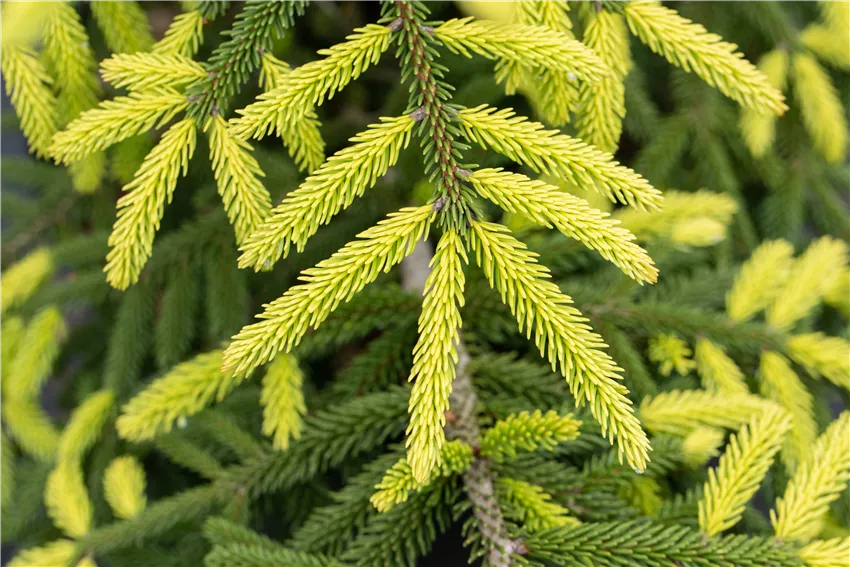 Da Nadelgehölze zu den pflegeleichten Kandidaten im Garten zählen, brauchen sie eigentlich nicht viel Pflege. Dünger und Wasser spielen aber bei allen Pflanzen eine Rolle. So kann organischer Langzeitdünger beim Einpflanzen mit in die Erde eingearbeitet werden, der den Pflanzen beim Anwachsen hilft. Auch danach kann er im Frühjahr für einen frischen Energiekick sorgen, der die Nadelgehölze pflegen und wachsen lassen kann. Wichtig zu wissen beim Düngen: Nadelgehölze vertragen keinen radikalen Rückschnitt. Wer also nicht möchte, dass die immergrünen Gartenbewohner in die Höhe und Breite schießen, der sollte sparsamer mit Dünger umgehen. Wichtig ist aber auch das Gießen. Auch, wenn Nadelgehölze einen eher kargen Boden bevorzugen, brauchen Sie doch auch ausreichend Wasser zum Wachsen. Je nach Wetterlage sollte man auch zusätzlich wässern, wenn es nicht ausreichend geregnet hat. In der Regel kommen die Nadelgehölze nach dem ersten Standjahr aber relativ gut mit dem gegebenen Wasserangebot zurecht und müssen nur bei anhaltender Trockenheit, zum Beispiel im Sommer, zusätzlich gegossen werden.